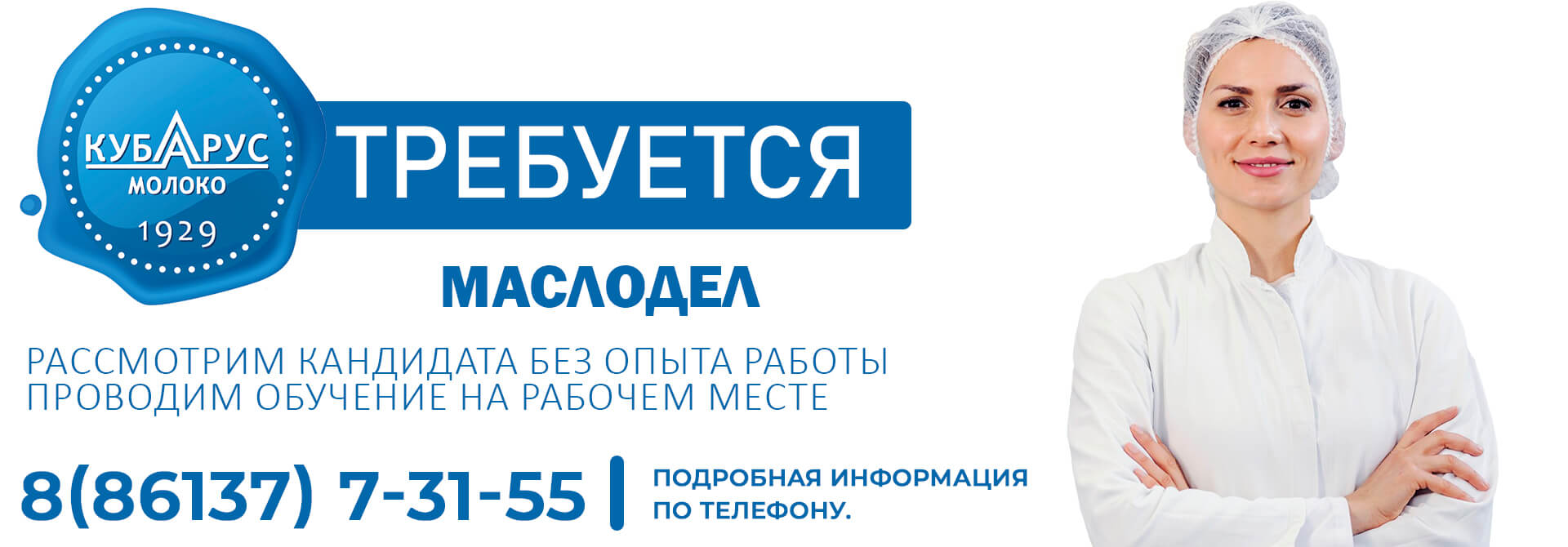 Вакансии Аппаратчик пастеризации и охлаждения молока Слесарь-ремонтник Оператор автомата по наливу молочной продукции Маслодел Изготовитель творога Грузчик